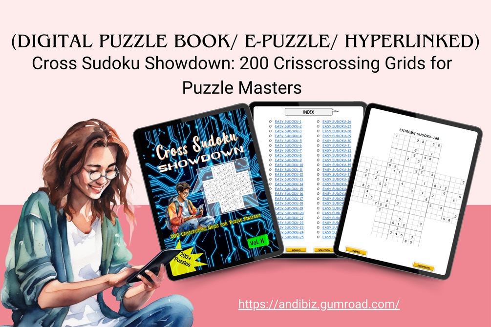 Get ready to dive into the ultimate Sudoku experience with Cross Sudoku Showdown: 200 Crisscrossing Grids for Puzzle Masters. These puzzles are woven together in a unique cross formation, combining classic Sudoku with an extra layer of challenge. Each grid intersects with others, demanding not just logic and skill, but strategic thinking to tackle the overlapping zones. It’s the perfect puzzle book for those who are ready to elevate their Sudoku game.