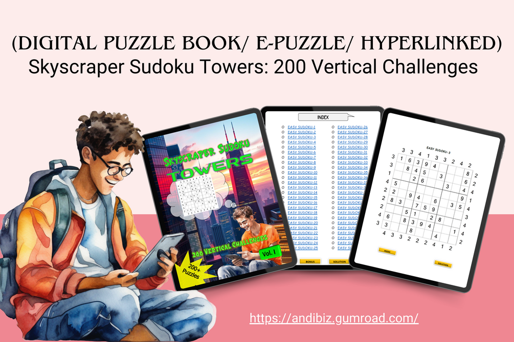 Skyscraper Sudoku Towers, where every puzzle takes you higher into the clouds of logic and strategy. With 200 intricately designed puzzles, this book offers a fresh twist on classic Sudoku—challenging you to think vertically as well as horizontally. Each puzzle mimics the rise of a skyscraper, with numbers stacking up from floor to floor, forcing you to consider not just rows and columns, but heights and levels.